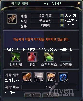 惜しいですが、職人の強化スチール・スフィアリックス30%・猛攻の印章だけを入れて製作してみた結果、それでも攻撃力と正確度が一般アイテムに比べて高い武器が製作されたのを確認しました。